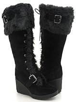 More CLASSY Furry Wedge Winter Snow BLACK Boots Women's reviews available