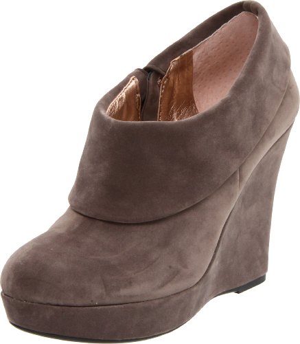 - Suede upper in a dress platform wedge bootie style with a round toe