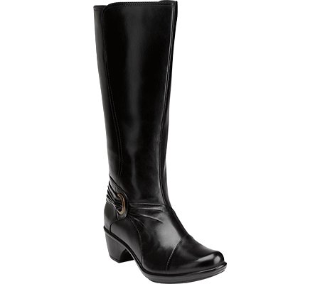 Take a step into the right direction of flexible comfort and superior style when you put on the Clarks Bendables Women's Wish Excite Tall Boot. Made with a durable thermoplastic rubber outsole, this boot will provide you with long-lasting wear, and the flexible outsole is designed to bend with your foot for a comfortable walk. Enjoy the abundance of extra cushioning provided by the Ortholite foam footbed and padded lining. The leather upper is decorated with metal ring and pleating detail along with a full-length side zipper for convenient, easy on / off. You'll get a comfortable fit with the elastic stretch side inserts.