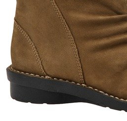 Clarks Bendables Women's Nikki Tea Ankle Boots Description:Walk the way you were meant to with this comfortable Clarks Bendables Women's Nikki Tea Ankle Boot. Flex grooves on the slip-resistant rubber outsole let the boot move with you as you step, and a slight wedge gives you a little lift without sacrificing stability. The supple nubuck leather upper is lined in soft synthetic fabric that won't irritate your skin. The boot is styled with a gathered shaft front for visual interest; a side zipper allows for easy on and off.